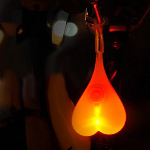 Feature: It's a Romantic and Safety Bike Tail Light. Heart design,fashion and nice,can use for bike light or room decoration. Waterproof silicone case: Water shock proof silicone body protected against splashing water from any angle. Easy to use,just need to touch the light when you use it. Specification: Material:Silicone Waterproof: Anti-water splash Shape:Heart Weight:About 70g Length:14cm Width:5.5cm Light type:LED Battery:2 * 2030 Button Battery Suitable For:MTB, Road Bike, Bag, Room Decor Package included: 1x Heart Bike Tail Light (Battery included) 0