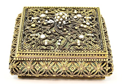 Ciel Collectables 1012037A Antique Finish Large Jeweled Trinket Box, 4" x 1.25" x 4"
