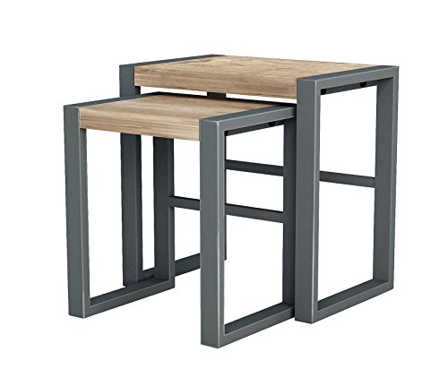 -. Title : Asta Industrial Modern Teak & Iron Nesting Tables, Set of 2