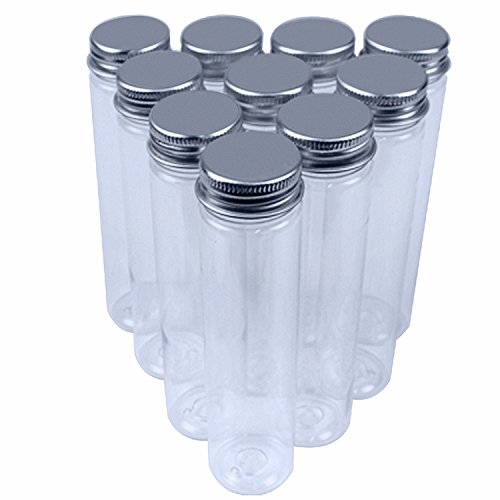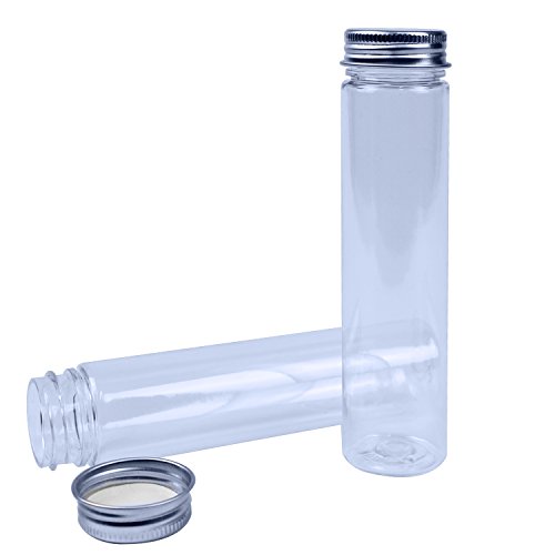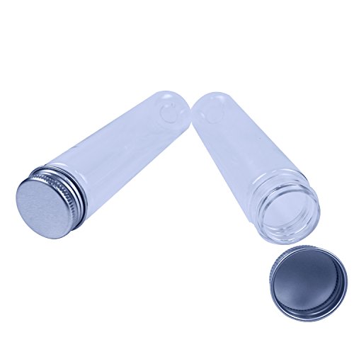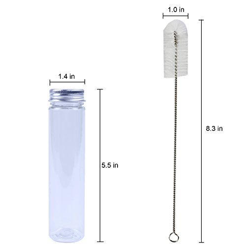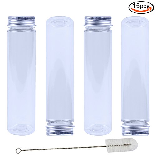 Rainbow-B 15 Clear Flat-bottomed Plastic Test Tubes with Screw Caps, 140 x 35 mm (110 ml) & 1 Test Tube Brush