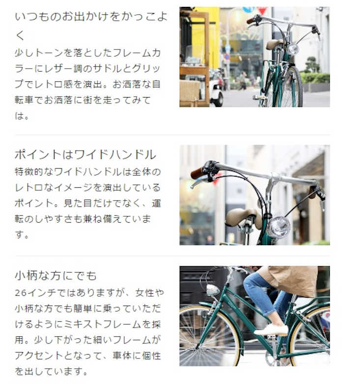 特徴的でワイドなハンドルに、大き目のダイナモライトや味のあるグリップが全体のレトロ感を引き立てます。いつものカフェがある町、お気に入りの本屋さんまでの道、何気ない普段の生活をまるで映画のワンシーンのように変える、そんな一台です。主人公はあなた、ORTERと過ごす新しいサイクルライフを。