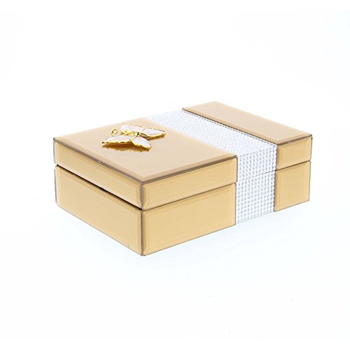 Benzara Splendid Wood Glass Jewelry Box, Beige
