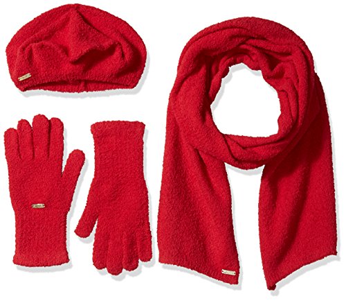 Calvin Klein Women's Super Soft Beret, Scarf and Glove Set, Rouge, One Size