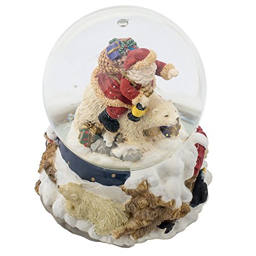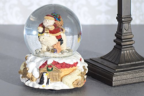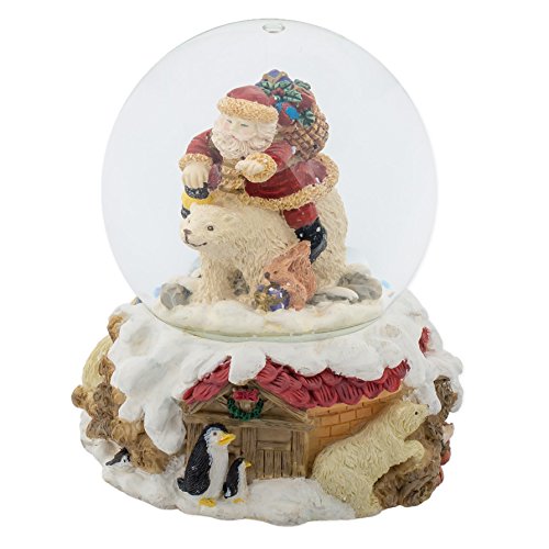 Santa Claus Riding Polar Bear Christmas 100MM Music Water Globe Plays Tune Here Comes Santa Claus