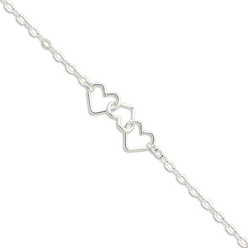 -. Title : ICE CARATS 925 Sterling Silver 10 Inch Solid Heart Link Anklet Ankle Beach Chain Bracelet Fine Jewelry Gift For Women Heart