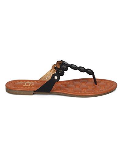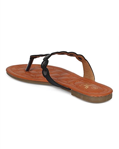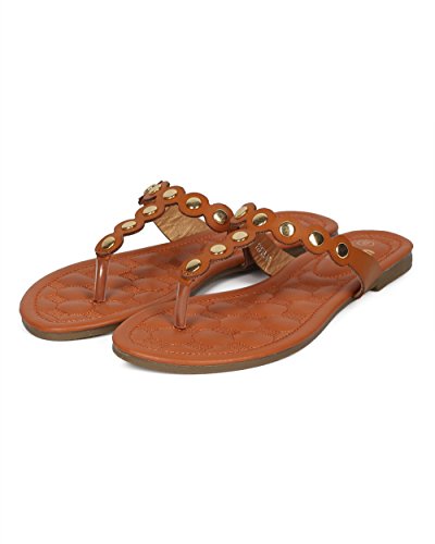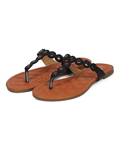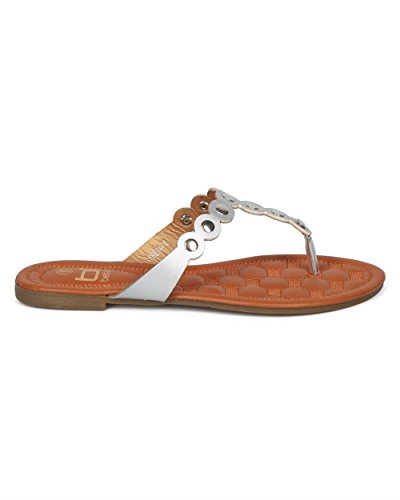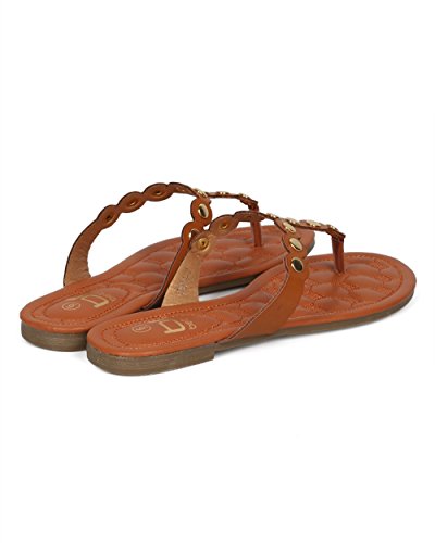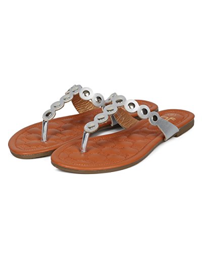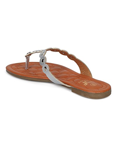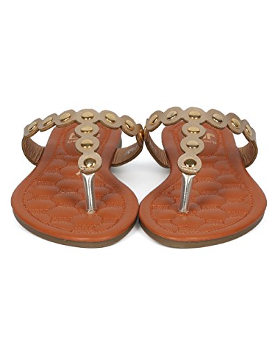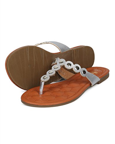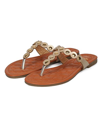 Women Metallic Embellished Thong Sandal - T-Strap Flip Flop Flat Sandal - Casual Everyday Versa...