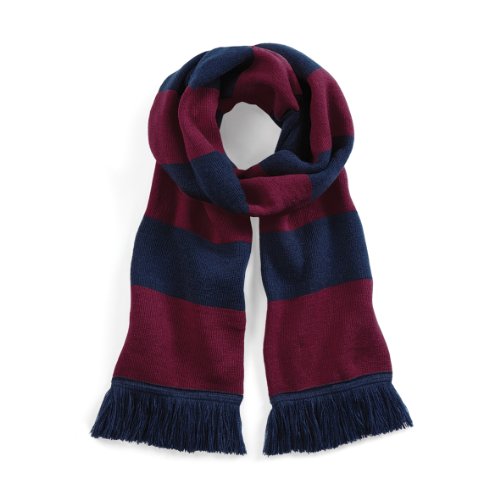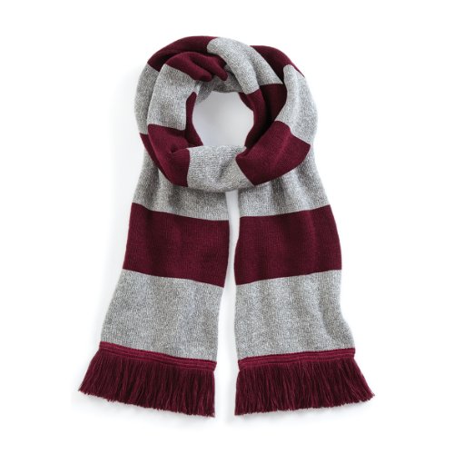 Beechfield Varsity Unisex Winter Scarf (Double Layer Knit) (One Size) (Burgundy/Gold)
