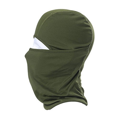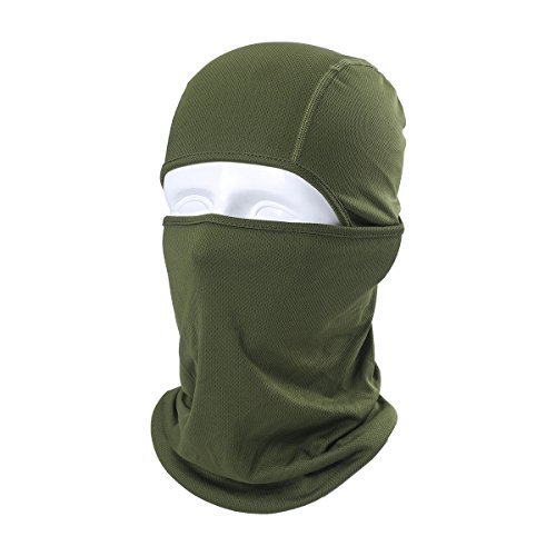 -. Feature : Extremely strong and durable - wrinkle free - lightweight, portable and comfortable - quick drying. / Women and men balaclava face mask, provides cover and comfort with lightweight (thin material) during all outdoor sports and activities including motorcycle, airsoft paintball, skiing, snowboarding, hunting, shooting, running, tactical training, mountain, snow machining, trekking. / Material: lycra, the mask provides great protection to your face, ear and neck from sun, wind, soft and comfortable. Breathable material allows easy breath but ultra protection. / Classic styling, feels soft, windproof breathable excellent,hat solid modelling, in line with the structure of human head. Balaclava hood is to be worn next to skin underneath any helmet or hat ( including any motorcycle helment or ski helmet), without any skin irritation and helps PREVENTS HEAT LOSS / There are three kinds of face mask for your reference: Black, Army Green and Gray. Please choose a color that you like.