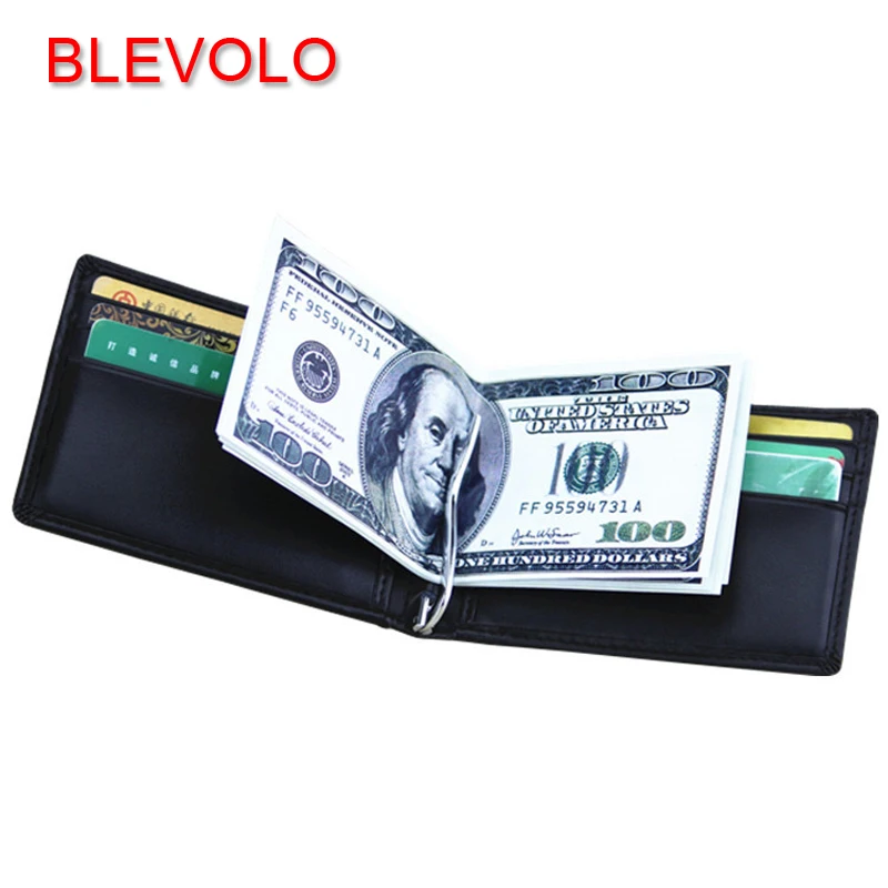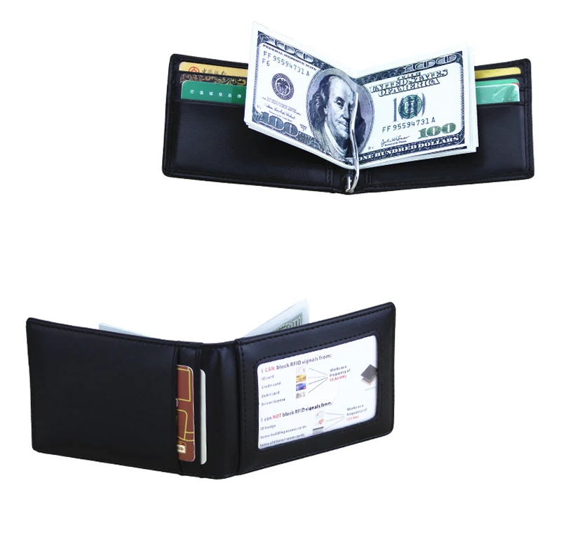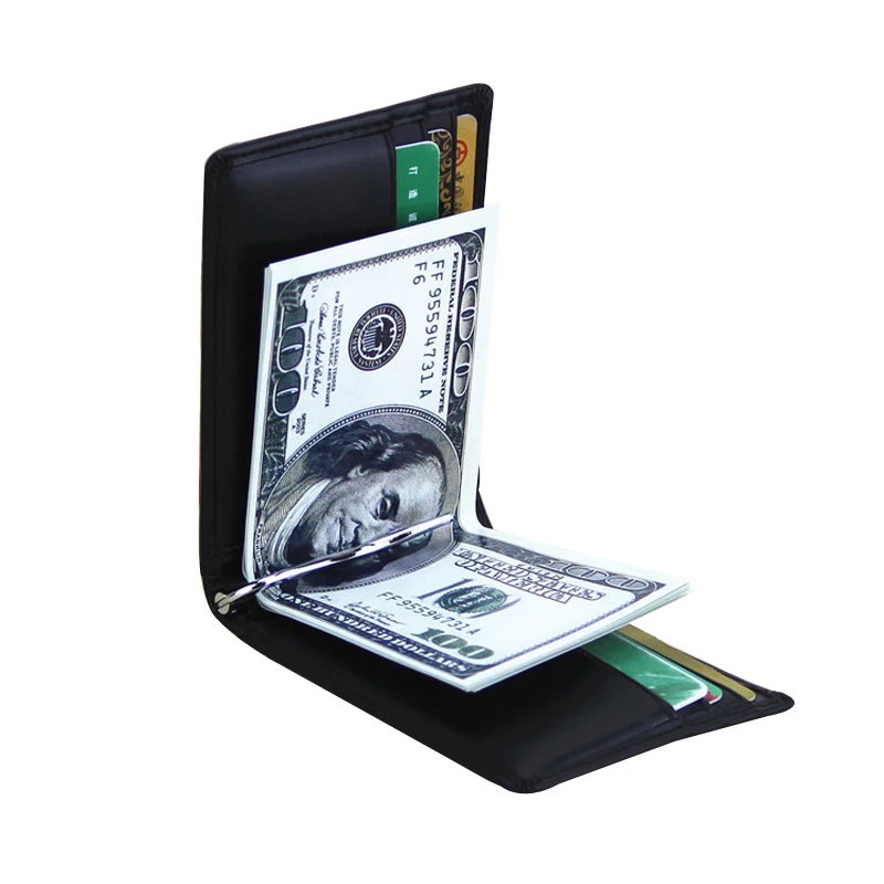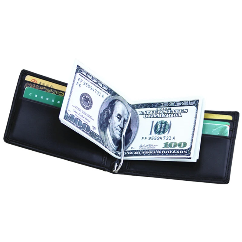 Casual Male Money Clips:Soft Black Clutch Wallet