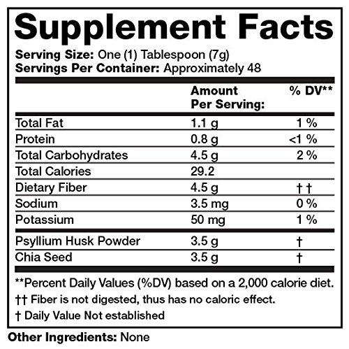 ReleaseDate : 2017-06-14 Studio : Olympian Labs, Inc. Publisher : Olympian Labs, Inc. Binding : Health and Beauty Product Description Psyllium is a popular form of fiber. Research shows that taking psyllium is beneficial to many parts of the human body, including the heart and the pancreas and appears to have a role in managing cholesterol. Psyllium is a bulk-forming laxative, that soaks up water in your gut and makes bowel movements much easier. Chia seeds are among the most nutritious foods in the world, loaded with fiber, protein, Omega-3 fatty acids and various micronutrients. Because of all the fiber, chia seeds can absorb up to 10-12 times their weight in water, becoming gel-like and expanding in your stomach helping to also suppress your appetite. Thanks to the slow-digesting carbohydrate/ fiber mix, the energy gained from chia seeds is sustained and long-lasting. Soluble fiber allows more water to remain in your stool, making waste softer, larger, and thus, easier to pass through your intestines. Insoluble fiber adds bulk to your fecal material, which hastens its passage through your gut and prevents that constipation feeling. 0