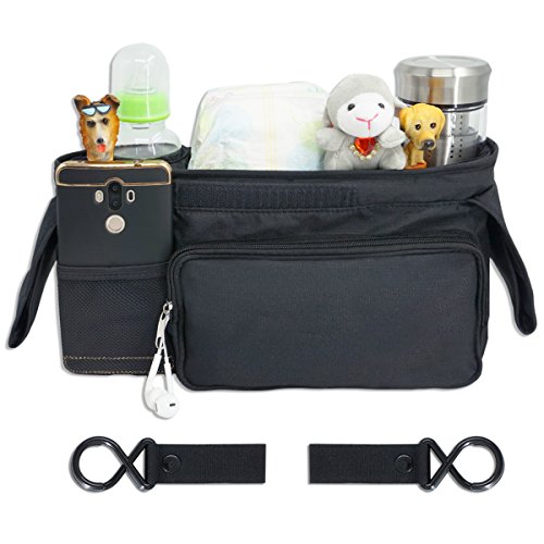 BEST STROLLER ORGANIZER WITH 2 CUP HOLDERS FOR MOMS, BEST STROLLER ACCESSORY FOR NEW PARENTS - COME WITH 2 STROLLER HOOKS AND CARRY BAG