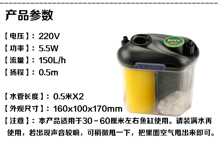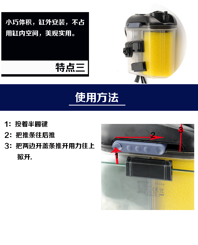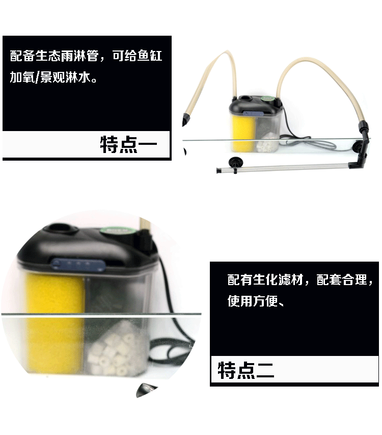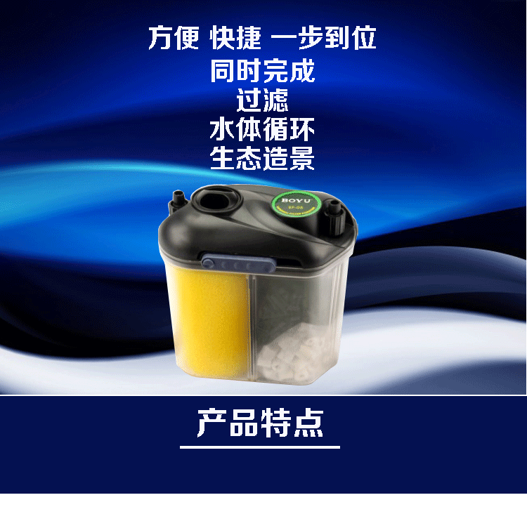 1. This product is a new design of high-performance outside the tank filter, innovative generous, compact structure, beautiful appearance.