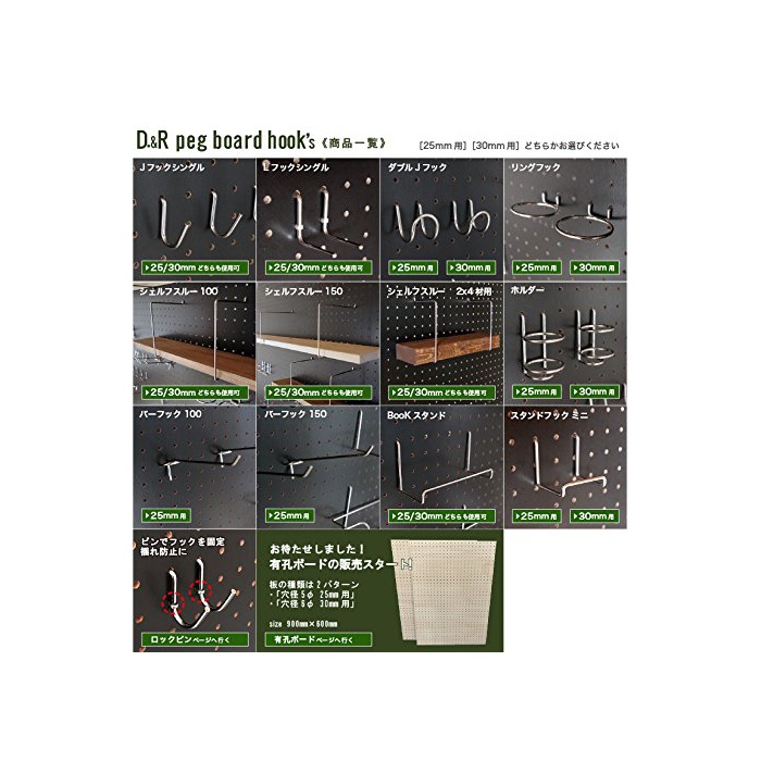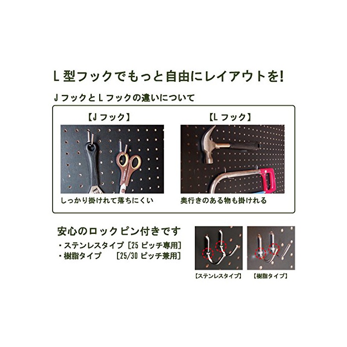 원본상품명: ★有孔ボ?ド用 L型フック、ステンレスロックピン付セット P25【5個入】