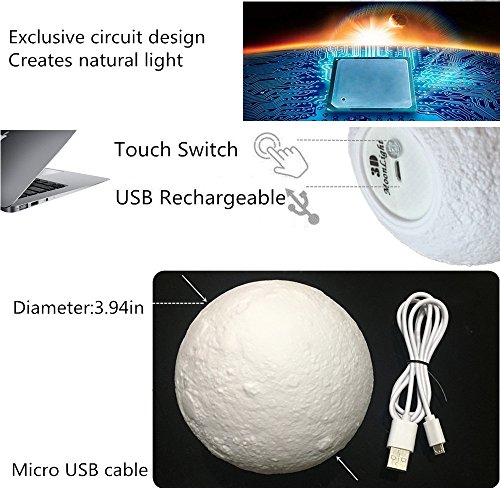 - ★The night lamp design were referenced to NASA's satellite data, Shows you the realistic moon landscapes. Owns your private moonlight. 3d light Moon in My Room.