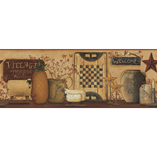 York Wallcoverings CB5508BD Hearts and Crafts III Primitive Pineapple Border, Gold