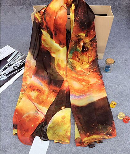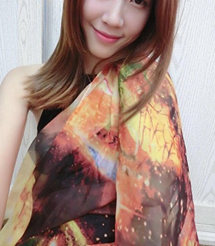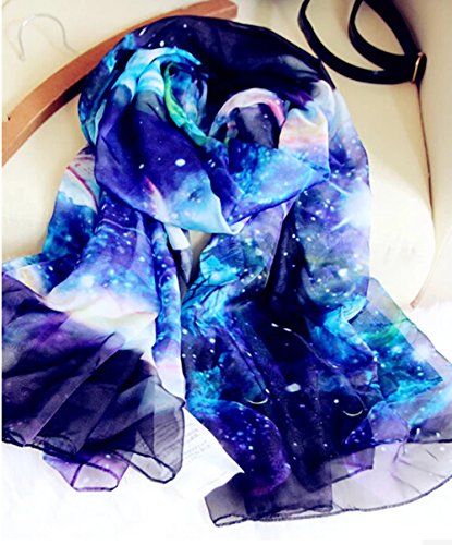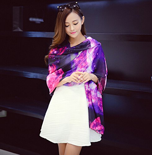 Product Description Feature: Condition :100% Brand New And High Quality Material: Chiffon Color: Purple, Blue, Red, Yellow Length: 180cm (70.87") Width: 145cm (57.09") Package Included: 1pc X Strarry Print Scarf Note: Please allow some slight color difference as different lights and monitors always show different colors. Thanks for your kindly understanding