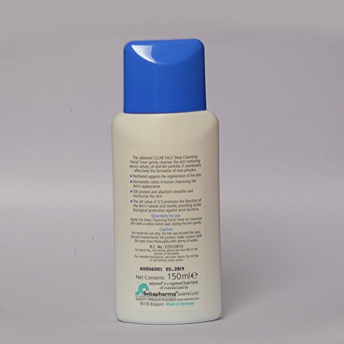 Sebamed Clear Face Deep Cleansing Facial Toner (150mL) gently cleanses the face removes exess sebum, oil and dirt. It offers antibacterial action and is therefore extremely effective in preventing the developement of pimples. Panthenol encourages skin regeneration and hamamelis soothes it. Silk proteins and allantoin act as moisturisers. The pH value of 5.5 encourages the natural protective acid mantle and takes biological action against bacteria causing acne. To cleanse the face sebamed Clear Face Deep Cleansing Facial Toner should be applied to a cotton wool pad and smoothed evenly over the face.