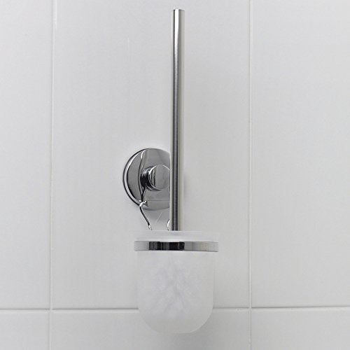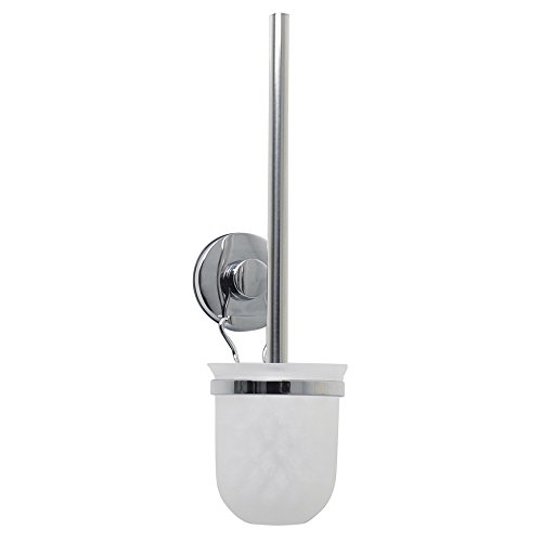 Suction cup toilet bowl cleaner holder with scrub brush and plastic cup for the bathroom