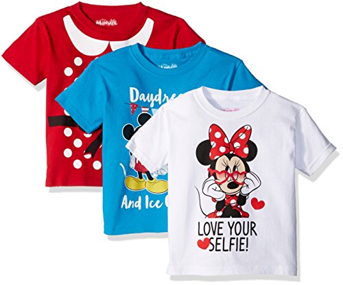 Disney Little Girls' Toddler Minnie Mouse 3-Pack Short Sleeve T-Shirts, Red/Turquoise/White, 2T