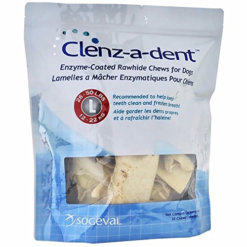 -. Title : Clenz-a-dent Rawhide Ezymed-coated Chews for Large Dogs Pet Dental Health 30ct