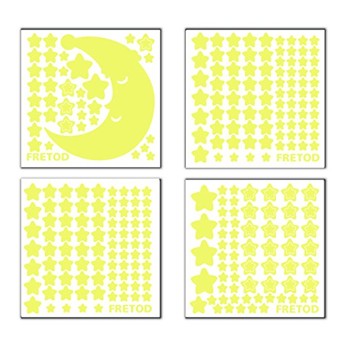 1.BRIGHTEST GLOW:Disappointed in your dull star stickers? FRETOD kid room stars contain twice as much of the latest photo-luminous formula for twice the brilliant shine to light up your baby bedroom!