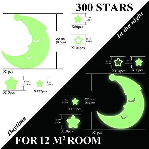 3.Large 9.4 Inch Moon + 300 Stars with 4 VARIOUS SIZE fill 12 SQUARE METER ROOM: Why settle with small tiny dull star stickers? FRETOD provide you bigger size to fill your whole fairy wonder kid room.