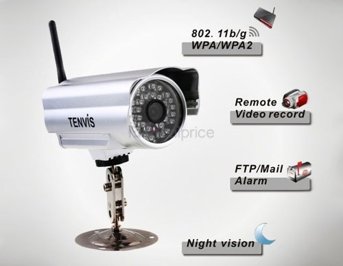 -. Binding : Electronics -. Brand : IP Surveillance -. Feature : The TENVIS wireless network camera features WI-Fi, CMOS sensor, high image and video quality, pan/tilt control and night vision. / It supports remote viewing and recording and is convenient to use anytime and anywhere. -. Label : IP Surveillance -. Manufacturer : IP Surveillance -. ProductGroup : PC Accessory -. ProductTypeName : COMPUTER_COMPONENT -. Publisher : IP Surveillance -. Studio : IP Surveillance -. Title : TENVIS 1/4 Inch CMOS Sensor Outdoor Waterproof Wireless Network Camera (Silver)