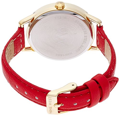 -. Binding : Watch -. Brand : Nine West -. Department : womens -. EAN : 0086702541034 -. Feature : Gold-tone watch featuring easy-to-read dial with Arabic numeral markers / 38 mm metal case with mineral dial window / Japanese quartz movement with analog display / Polyurethane band with buckle closure / Not water resistant -. IsAdultProduct : 0 -. Label : Nine West -. Manufacturer : Nine West -. Model : NW/1582WTRD -. MPN : NW/1582WTRD -. PackageQuantity : 1 -. PartNumber : NW/1582WTRD -. ProductGroup : Watch -. ProductTypeName : WATCH -. Publisher : Nine West -. Studio : Nine West -. Title : Nine West Women's NW/1582WTRD Gold-Tone Case Easy-to-Read Dial Thin Red Strap Watch -. UPC : 086702541034