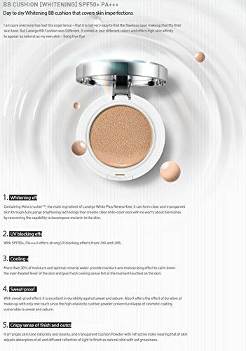 -. Feature : Sleek like baby skin by covering skin pores and keep your skin crispy all day long. LANEIGE BB Cushion SPF50+ PA+++ Pore Control! Sebum Control!!Net Vol. 15 g + 15 g(Refill)