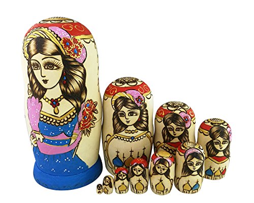 -. Title : Set of 10 Beautiful Gorgeous Blue Dressed Lady Girl Red Roses Wooden Nesting dolls Kremlin Castle Kids Birthday Christmas New Year Gift Home Decoration Perfect Mother's Day Gift