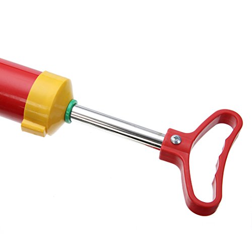 -. Feature : Material: plastic + rubber + metal rod / Color: red + yellow / Length(approx.): 39cm Metal rod(approx.): 23cm / Suction cup diameter(approx.): 7cm, 16cm / Package Included: 1 x Drain buster plunger 2 x Sucker