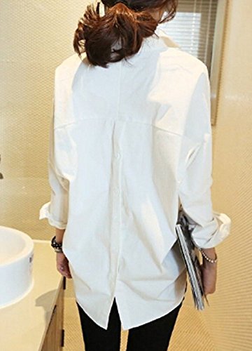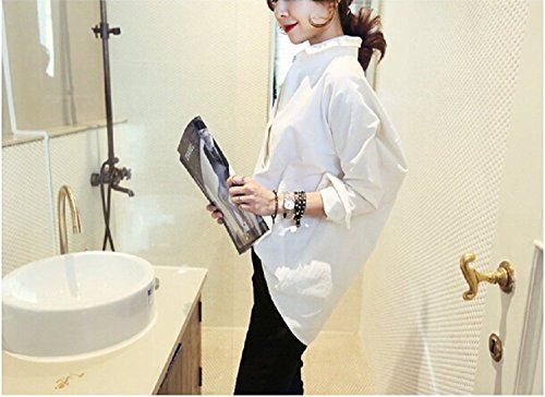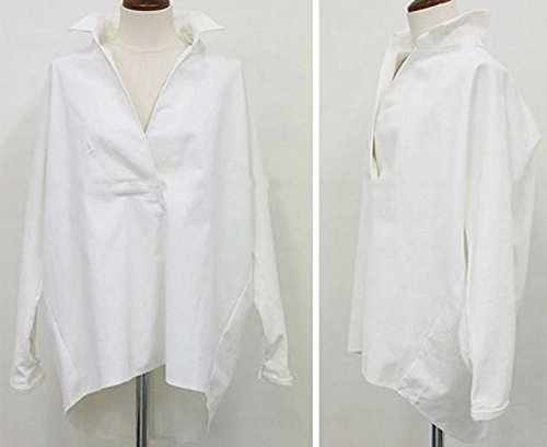 -. Title : (sleeping sheep) オフィス カジュアル Vネック ロング丈 長袖 ブラウス レディースシャツ シンプル 無地 白 チュニック カットソー おしゃれ OL 立て襟 大人 上品 スリット (L, ホワイト)