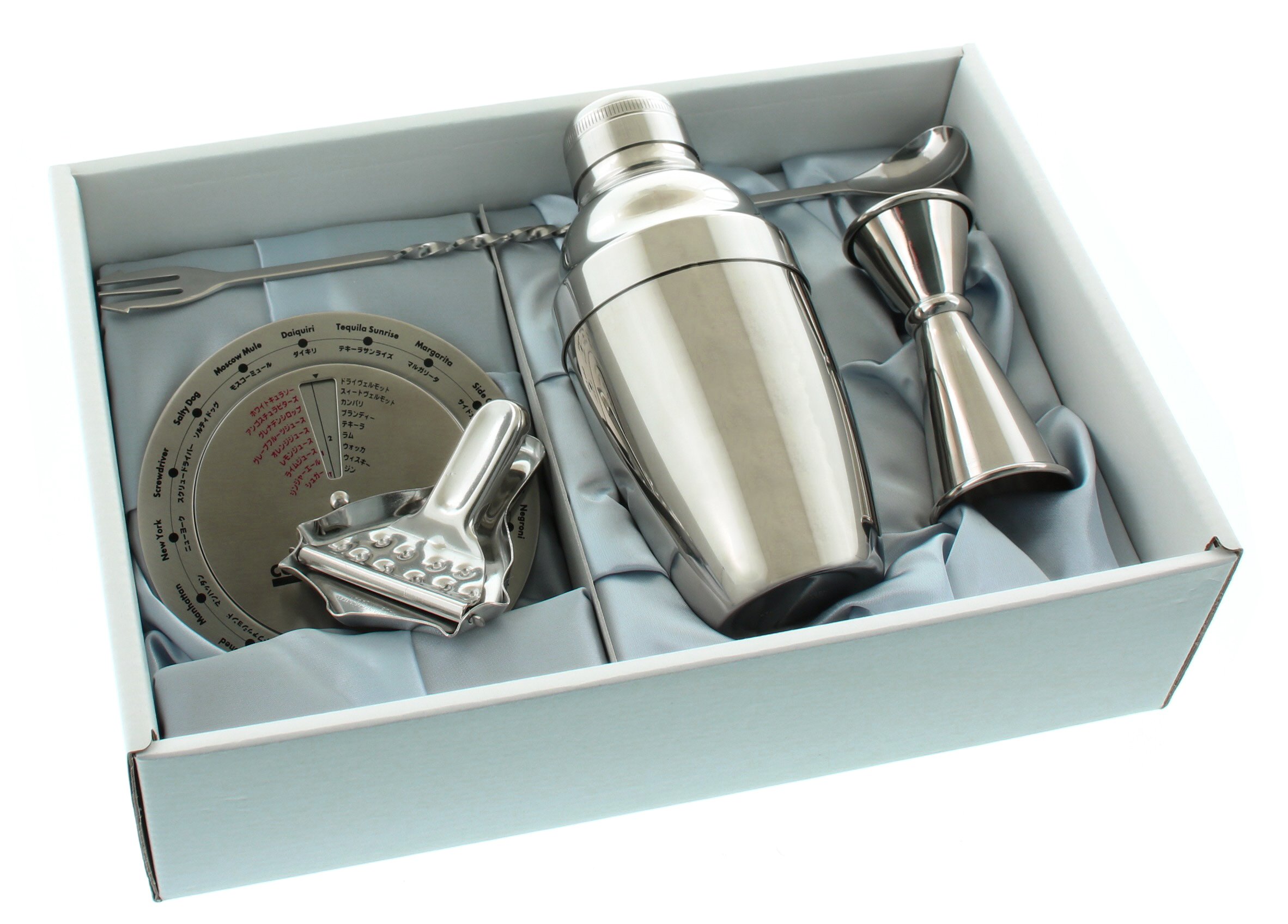 It is a cocktail bar set made at Tsubame-shi, Niigata prefecture, which is known as a major production center of metal western foodware (cutlery).