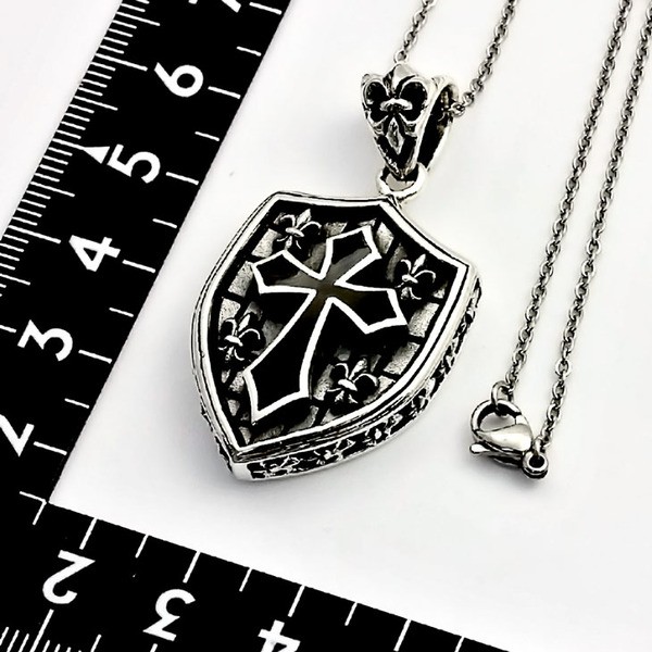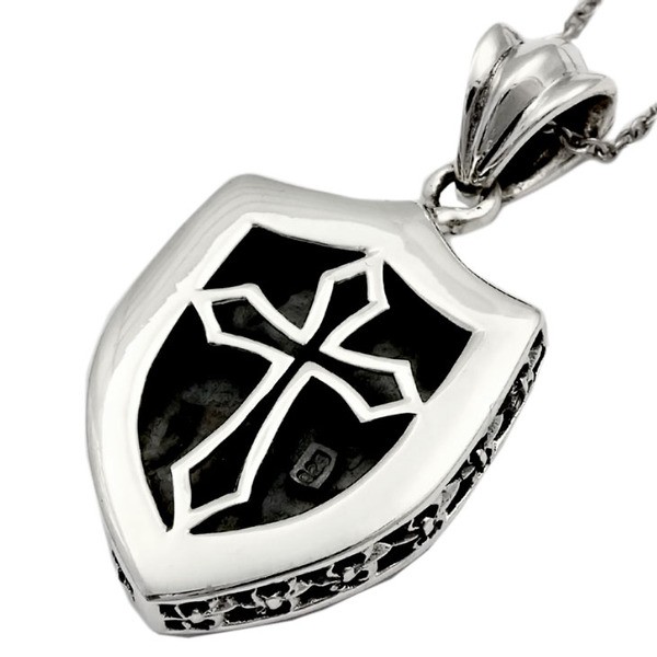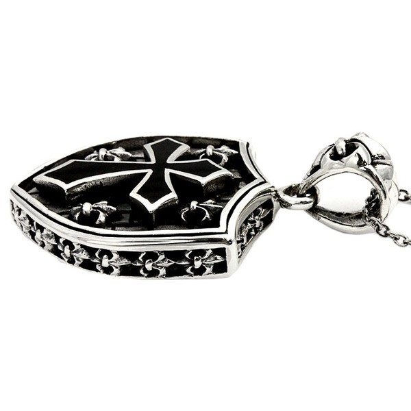 大振りなエンブレムがハードなRoyal Jokerクロスエンブレムペンダント。重厚感のある大きなエンブレムの中央にはクロスがセットされ、更には百合の紋章を各所にあしらったゴージャスなペンダントになっています。存在感のある胸元を演出したい時に、特にオススメです。本物のシルバーだから出せる質感が堪能できるアイテムです。専用のケースが無料で付属するので、プレゼント・ギフトにとってもオススメです。