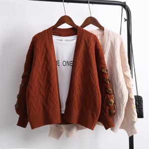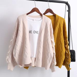 ニットカーディガン 羽織り 袖リボン 柄ニット セーター ニットコート プチプラセール 秋冬 AW ミディアム丈