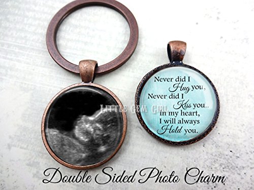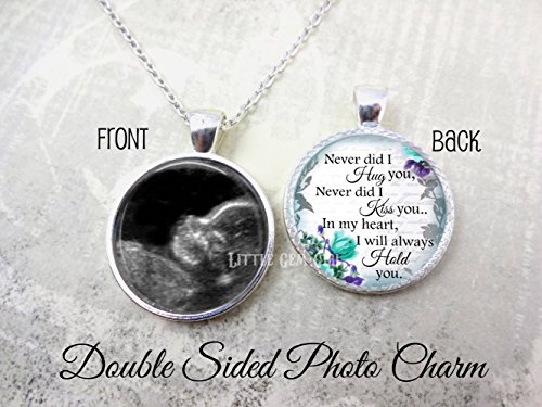 -. Title : Miscarriage Memorial Jewelry - Ultrasound Keepsake Necklace or Key Chain - Double Sided Custom Photo Sonogram Picture - Loss of Baby Pendant - Available in 5 Setting Colors & 19 Designs