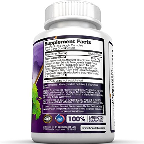 Research indicates that the 250 or 500 milligrams of Resveratrol commonly included in other supplements is not enough to allow you to get the most from this antioxidant. That's why we include 600 MG of Resveratrol backed up with other flavonoids and polyphenols such as pomegranate, Quercetin and green tea in our BRI formula.