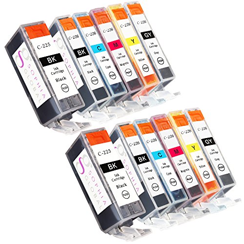 Sophia Global Compatible Ink Cartridge Replacement Set for Canon PGI-225 CLI-226 (Pack of 12: 2 PGI-225 Large Black, 2 CLI-226 Small Black, 2 Cyan, 2 Magenta, 2 Yellow, 2 Gray)