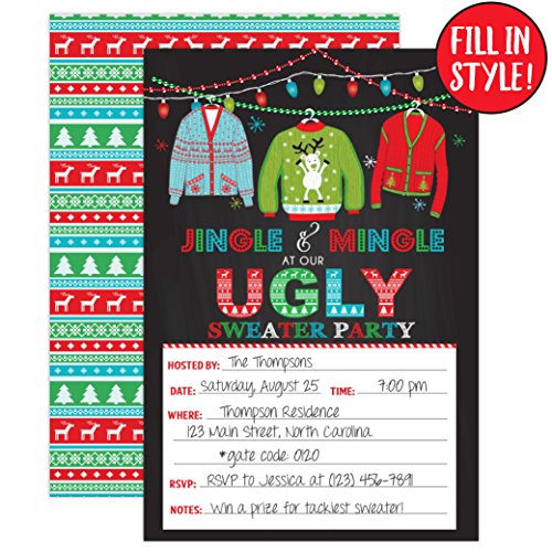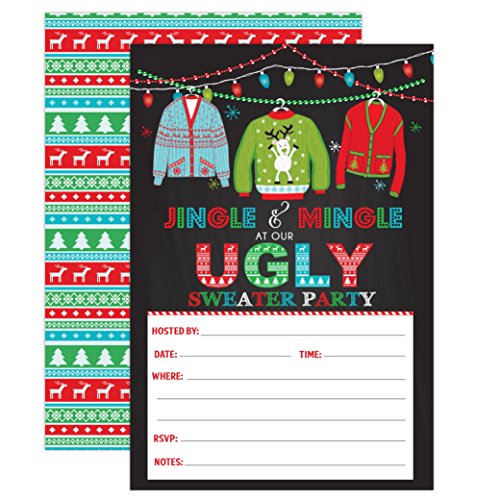 Ugly Sweater Christmas Party Invitations, Christmas Party Invitation,Tacky Sweater Party Invite, Festive Holiday Party, 20 Fill in Invitations and Envelopes