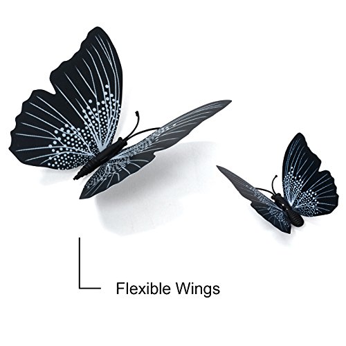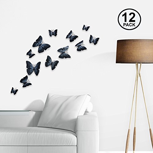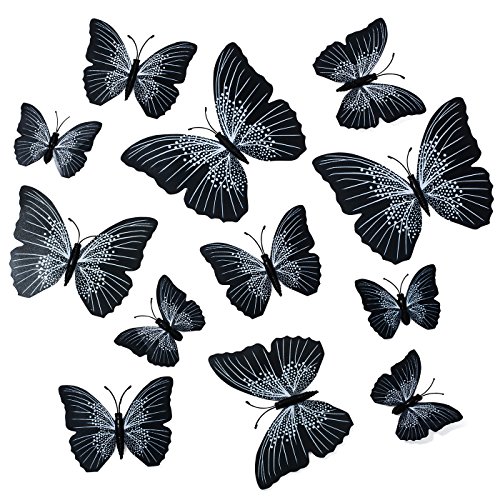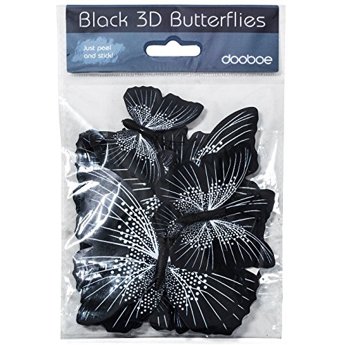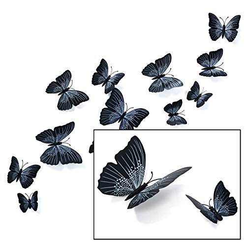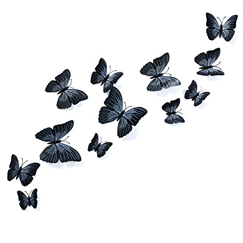 Butterfly Wall Decals - Butterfly Wall Stickers - 3D Butterfly Wall Stickers - Butterfly Wall Art - Wall Decals for Bedroom - Teen Room Decor - Black Butterfly Wall Stickers (12 pcs) by Dooboe
