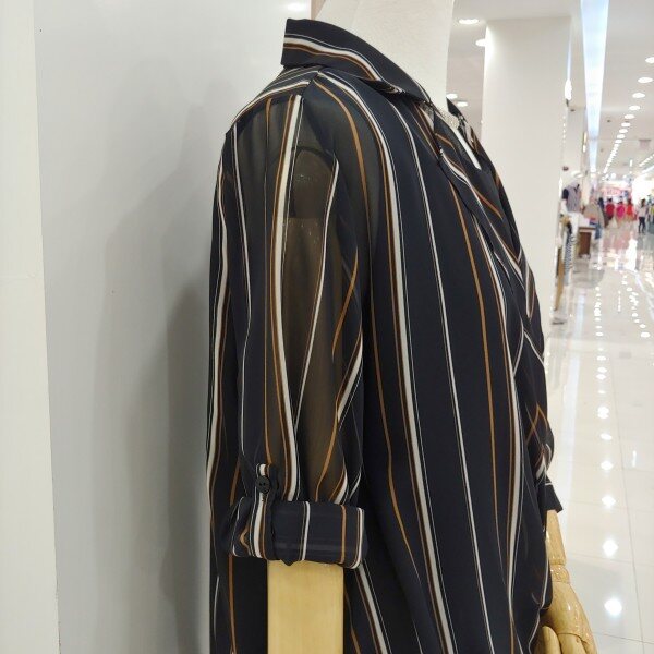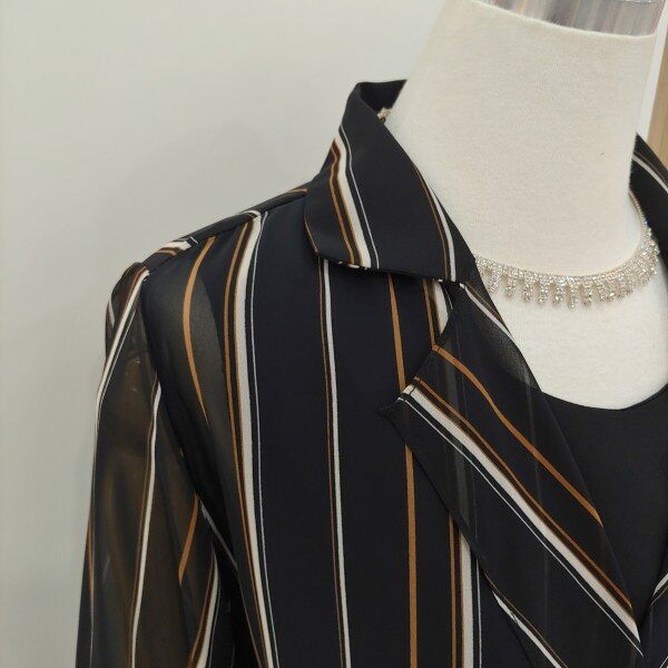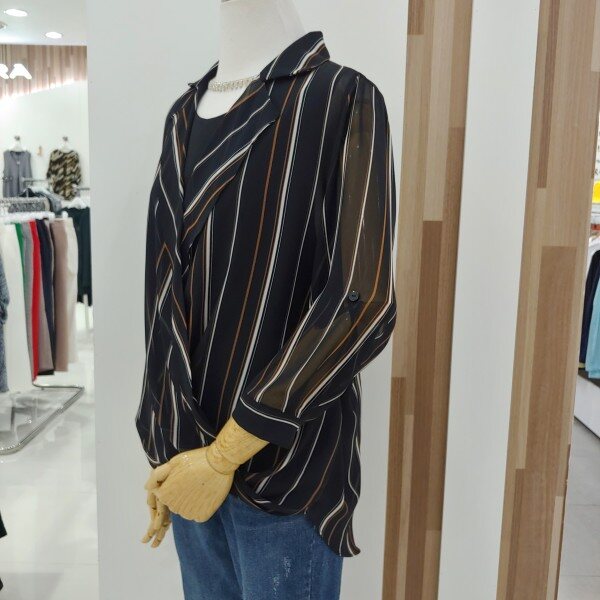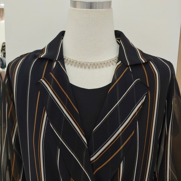 단정한 숄더라인이 몸매를 굉장히 날신해보이게 해드리고 스트라이프 패턴이 세련되며