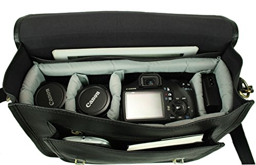 Leftover Studio Leather Camera Bag DSLR Messenger Shoulder Case with Removable Camera Insert 13 Inch Black
