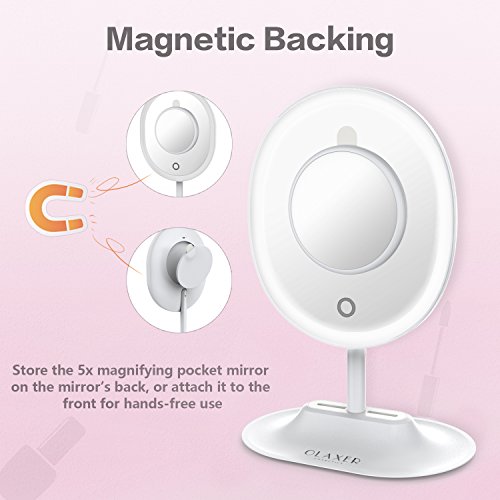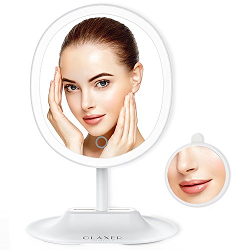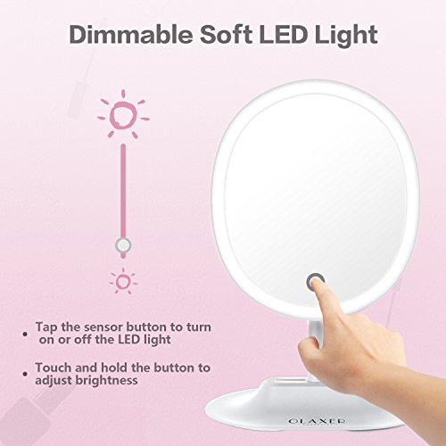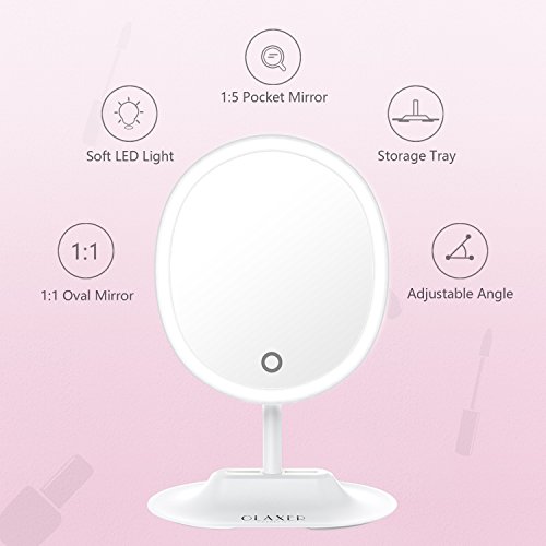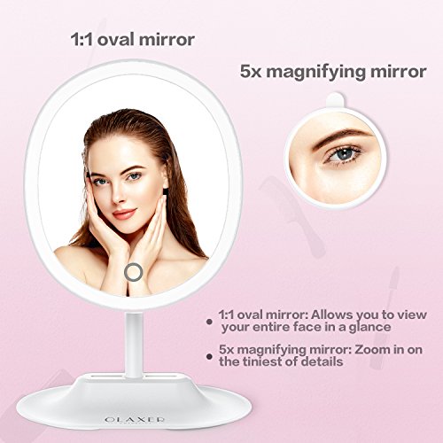 OLAXER LED Makeup Mirror with 1X / 5X Magnification, USB Rechargeable Oval Vanity Mirror Touchscreen Dimmable LED Light for Countertop Cosmetic...
