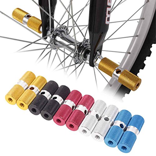 Studio : M-Egal Publisher : M-Egal Binding : Misc. Product Description Features: Made of aluminium material, this pair foot pegs are for bicycles front or rear axle use. Antislip stripe design allows you to use safely and for you to step on for long time. Fit for mountain bike, racing bike, etc. A great choice for replacement. Good tool for picking up another person by bicycle. Size: Length 70mm, diameter 23mm and is suitable for installation on all axles (axle unified 1.0cm). Load-bearing: Less than 70kg. Size: 7*2.3cm. Color: gold,silver,blue,red,black.