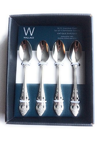 Wallace Antique Baroque 18/10 Stainless Steel Demitasse Spoons Set of 4