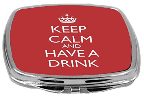 Rikki Knight Compact Mirror, Keep Calm and Have a Drink, Red