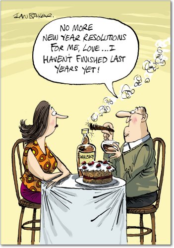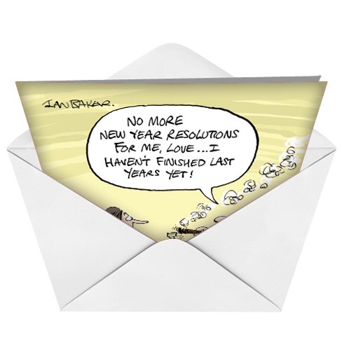 B1494 Box Set of 12 Unfinished Resolutions Funny New Year Paper Cards with Envelopes