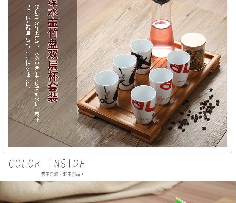 创意客厅家用水杯套装陶瓷茶杯水具耐热凉冷水壶套装带托盘