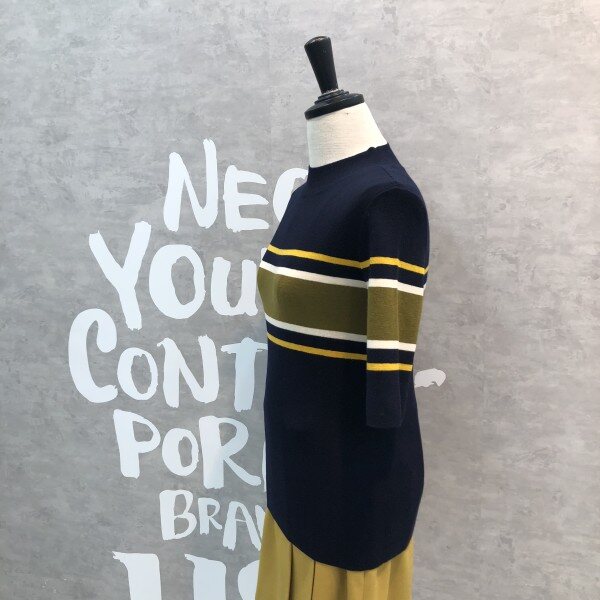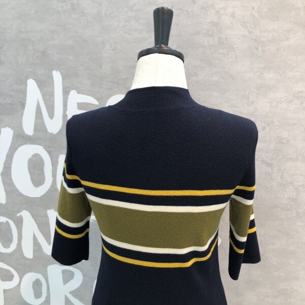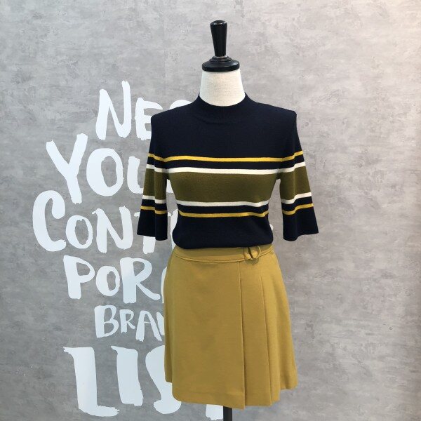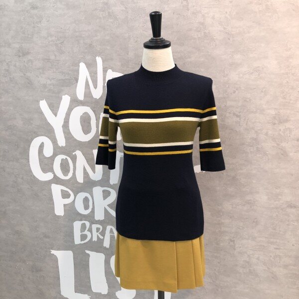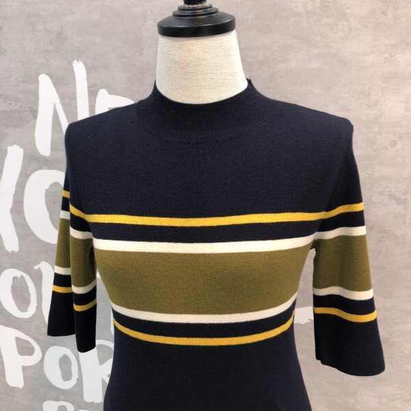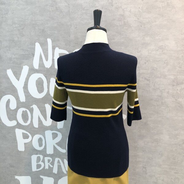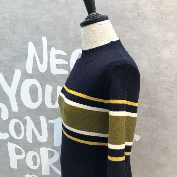 여성스러운 슬림핏 실루엣이 돋보이는 세련된 컬러 믹스 스트라이프의 풀오버입니다