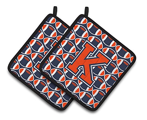 Caroline's Treasures Letter K Football Orange, Blue & White Pair of Pot Holders CJ1066-KPTHD, 7.5HX7.5W, Multicolor